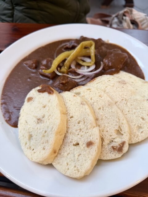- グラーシュ(牛肉の煮込み料理。パンと相性抜群)